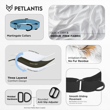Petlantis’ martingale collar is designed for smooth movement, with no friction between the loop, hardware, and straps—offering gentle, balanced control without rough pulling.