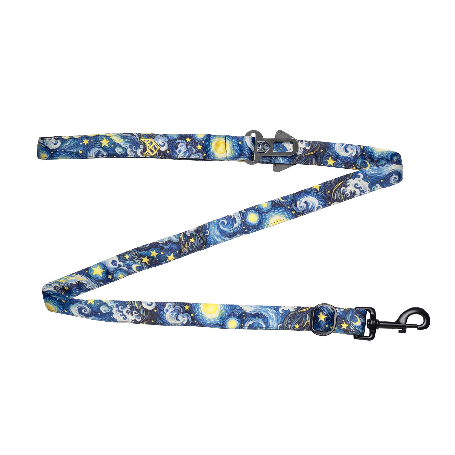 The Petlantis Starry Nights Dog Leash is inspired by Van Gogh’s iconic masterpiece, capturing the swirling skies and radiant stars that symbolize wonder and endless possibilities. Perfect for pets who shine with personality, this leash blends artistic elegance with modern functionality. Featuring an adjustable length with an anti-slip adjuster, you can easily adjust it for any situation, whether you're keeping your dog close or letting them explore. The ergonomic padded handle ensures comfort, with breathable mesh keeping your hands cool and secure, while the anti-rust black-coated clip guarantees durability and a sleek, stylish look. Designed for safety and convenience, it includes a built-in seat belt clip for secure car travel and a poop bag hanger for easy access. Crafted with a durable three-layered construction, this leash is water-resistant, odor-free, and easy to clean, making it perfect for everyday use or special outings. The Starry Nights Design adds a touch of artistic elegance to your pet’s gear, turning every walk into a masterpiece under the stars.